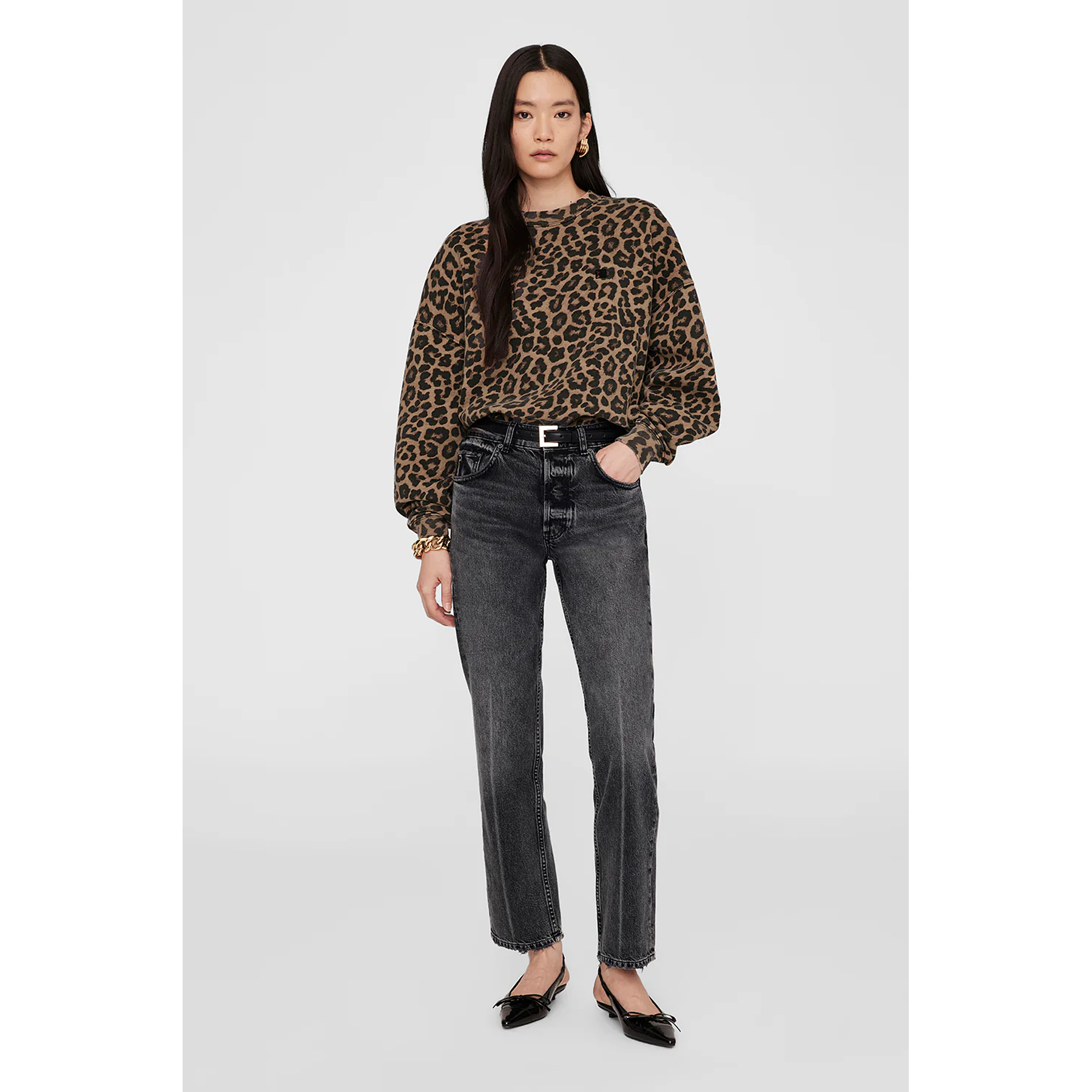 Hoodie ANINE BING Black And Brown Leopard